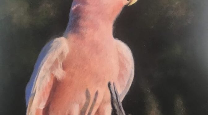“Mitch” Major Mitchell painted in oils 40cm x 50cm. Dressed in salmon pink these magnificent cockatoos possess a crown befitting a king. ” Mich” the Major Mitchell now resides on the walls of a Californian bird life art collector who’s passion is cockatoos. It is lovely to share Australian birds in painted form. [ more info ]